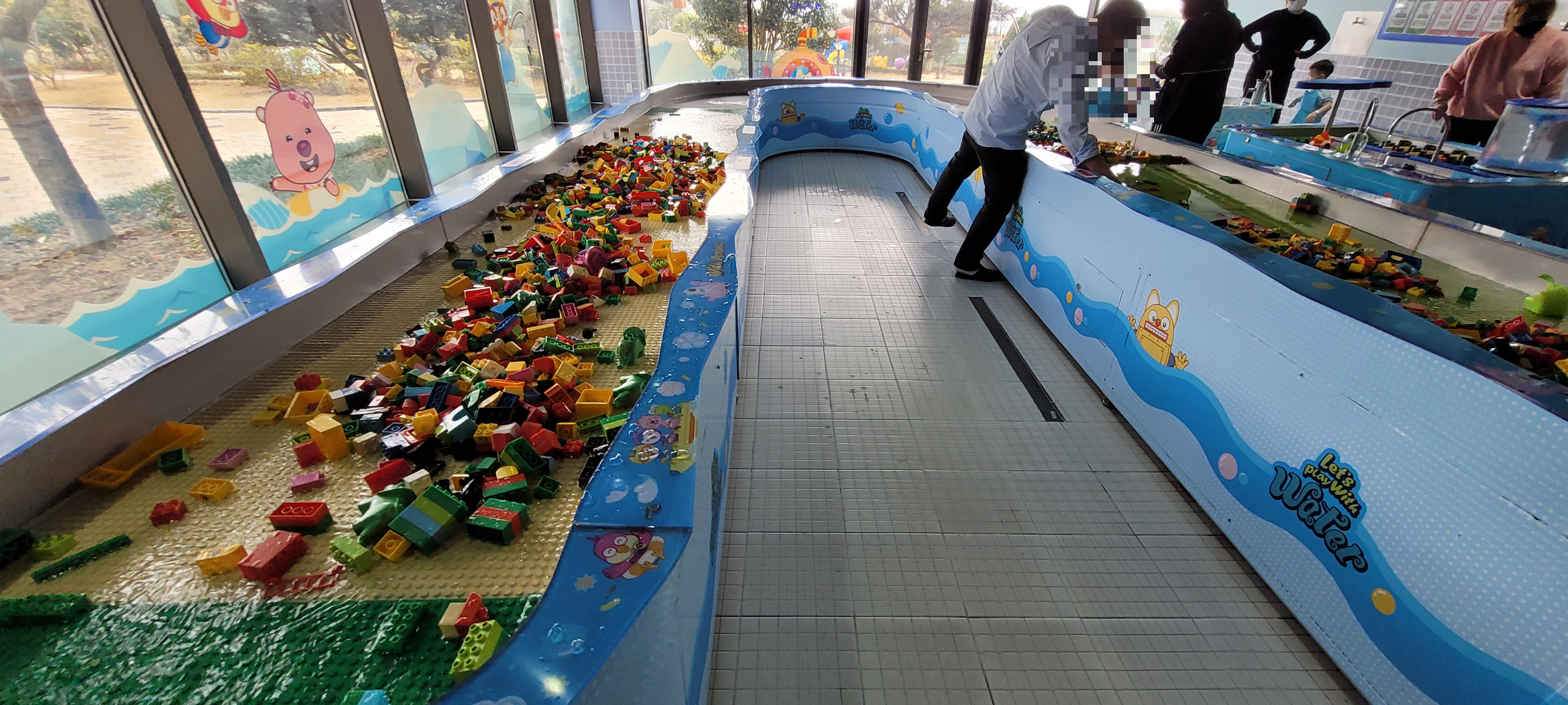 뽀로로 테마파크 안쪽으로 아쿠아플레이존이 있어서 물놀이도 할 수 있다. 우리가 방문한 날은 11월이라 물놀이를 많이 하지는 않았으나 블록을 쌓아보는 등 몇몇 아이들이 재미있게 놀이를 하고 있었다. 다양한 활동을 제공하고 있어서 정말 아이들을 위한 놀거리가 많다고 생각된다.