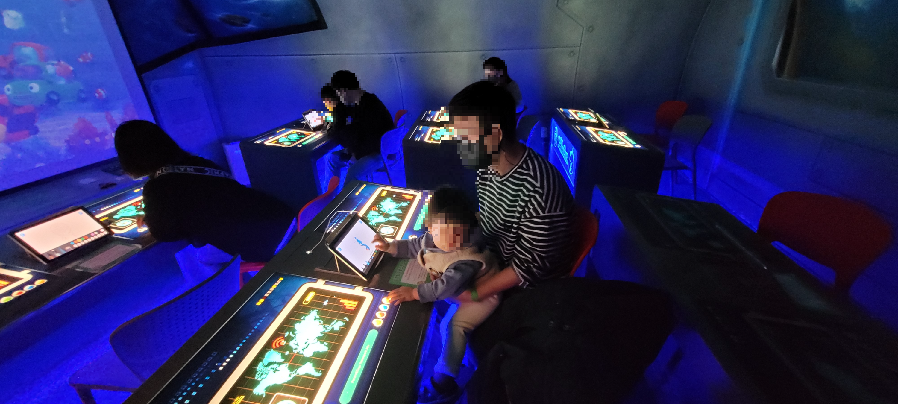 이용권이 없이도 들어가서 참여할 수 있는 것들도 많다! 곰곰이가 좋아했던 것은 로디의 디지털 드로잉! 태블릿 패드로 물고기나 뽀로로 캐릭터를 색칠하면 화면에 바닷속을 헤엄치는 3D로 캐릭터로 나타난다.