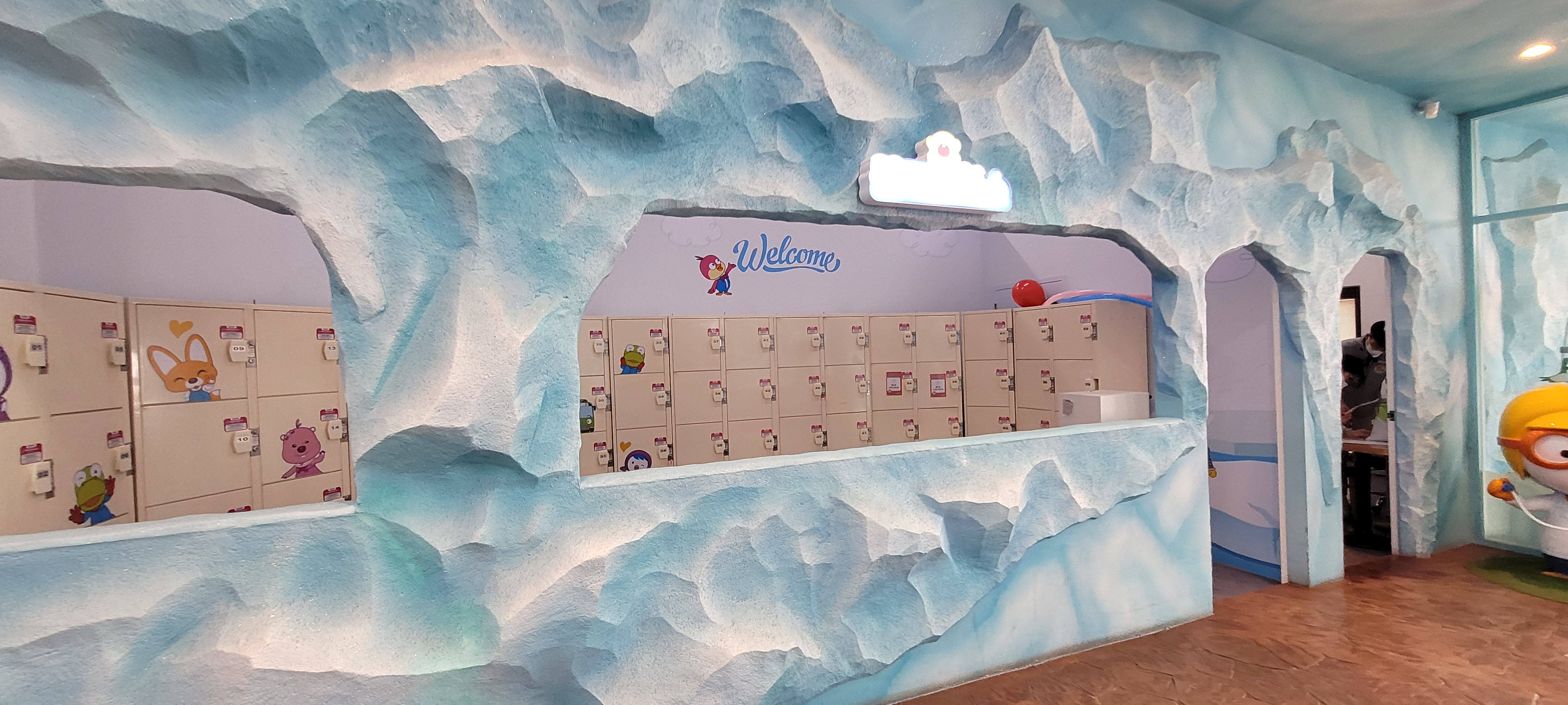 곰곰이가 뽀로로를 너무 좋아해서 고민도 안 하고 뽀로로파크를 선택했다. 키즈카페 형태로 2시간 시간제한이 있어서 들어가기 전에 입장시간을 팔찌에 써준다. 제한된 시간을 초과하면 추가금이 있다.