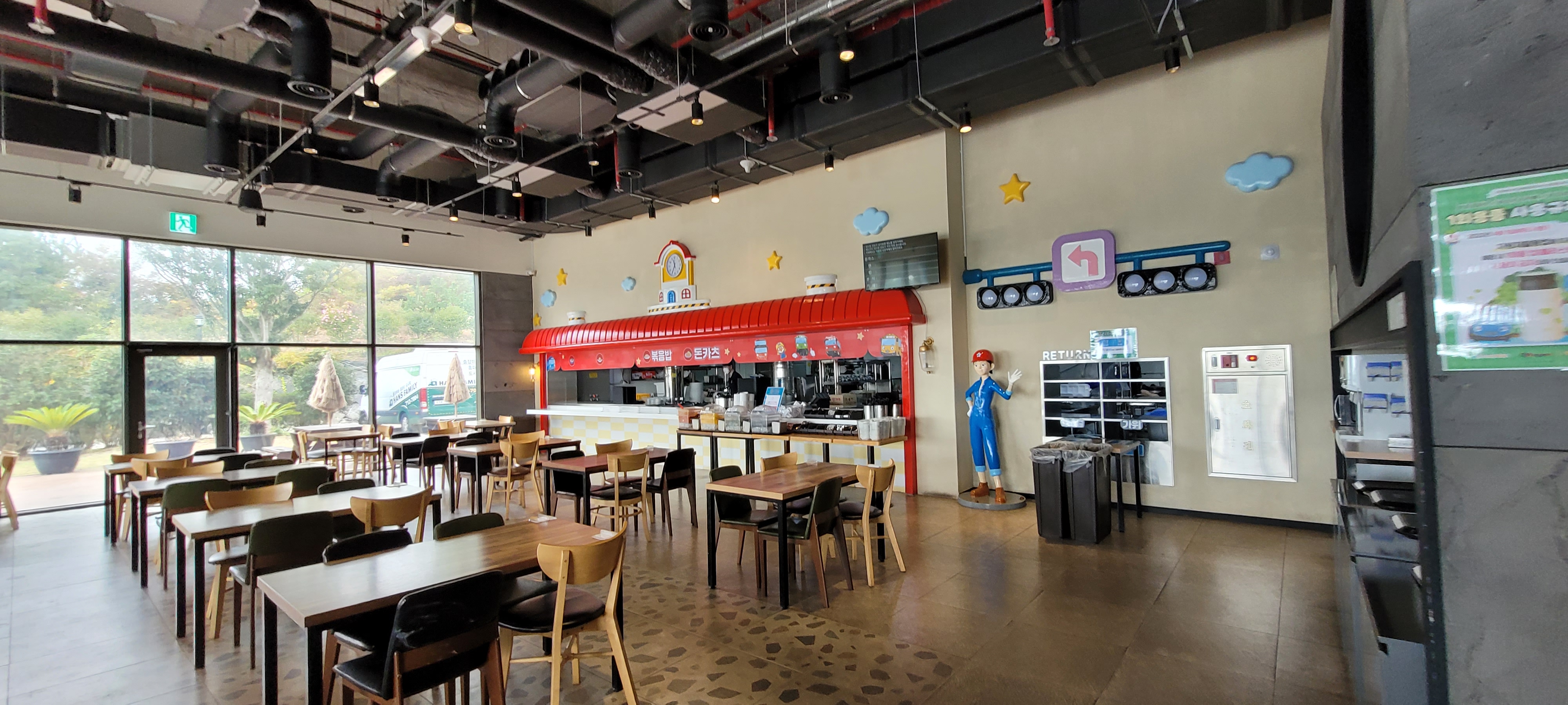 뽀로로앤타요 테마파크는 놀거리, 먹거리가 모두 해결되는 곳으로 식당도 크게 자리 잡고 있다. 위치는 실내 테마파크안으로 들어오면 캐릭터샵이 있는데 그 옆으로 자리잡고 있어서 쉽게 찾을 수 있다.