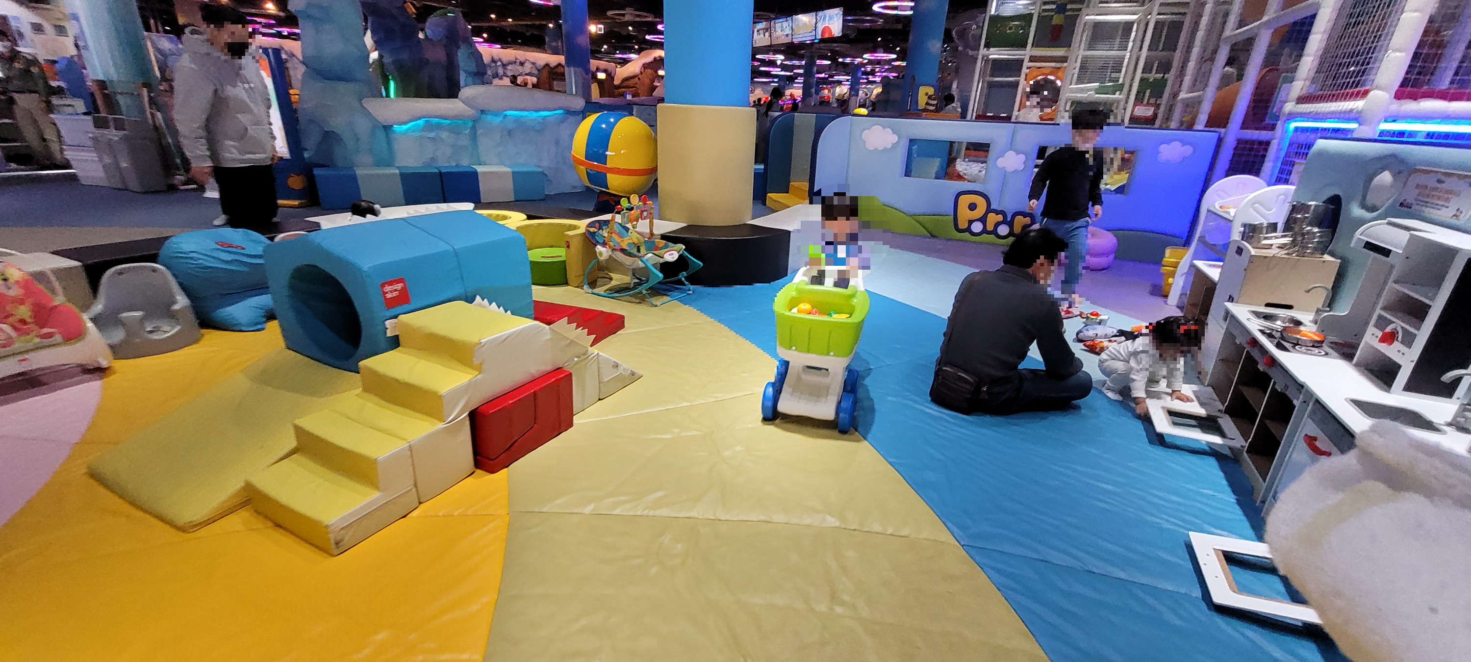 실외 공원을 지나 실내로 들어오면 다양한 어트랙션들이 눈에 띈다. 아이의 키에 따라 혼자 이용하거나 보호자와 동반 이용 가능한 것이 있기 때문에 살펴보고 타면 된다. 아침 시간에는 사람이 많지 않아서 줄이 길지 않아 바로 탈 수 있었는데 오후가 되면서 사람이 많아지기는 했다. 그래도 성수기가 아니어서 그런지 줄을 서도 그렇게 오래 기다리지는 않았다.