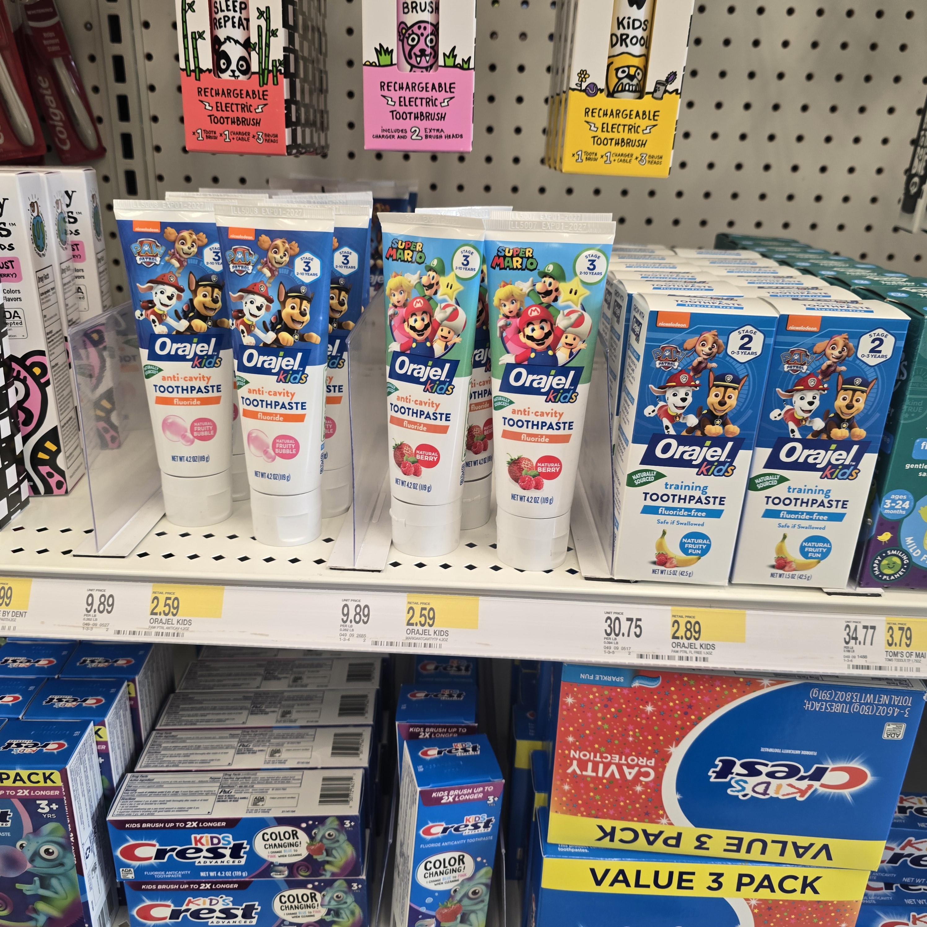 - Crest Kids: 500-1,100ppm 범위의 불소 함량 제품 제공