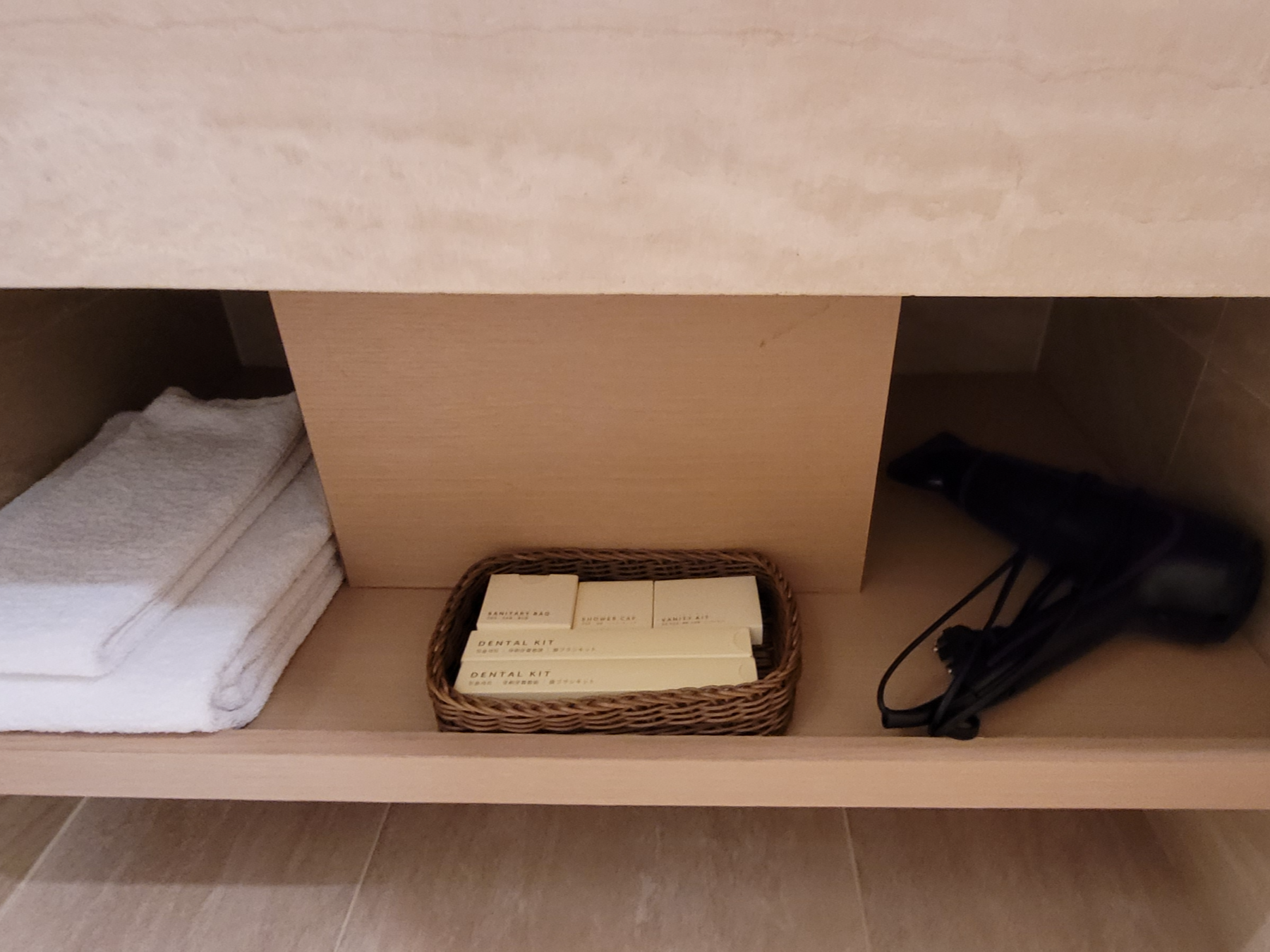 어메니티는 바디워시, 샴푸, 컨디셔너, 칫솔, 치약, 비누 등이 있고 매일 새것으로 가져다준다. 따로 요청한 아이용 어메니티는 바디로션과 바디워시를 가져다 준다. 수건은 필요하면 더 요청 가능한데 워터파크에는 객실 수건을 가져갈 수 없다. 참고로 스카이풀에서는 수건을 제공하고 있다.