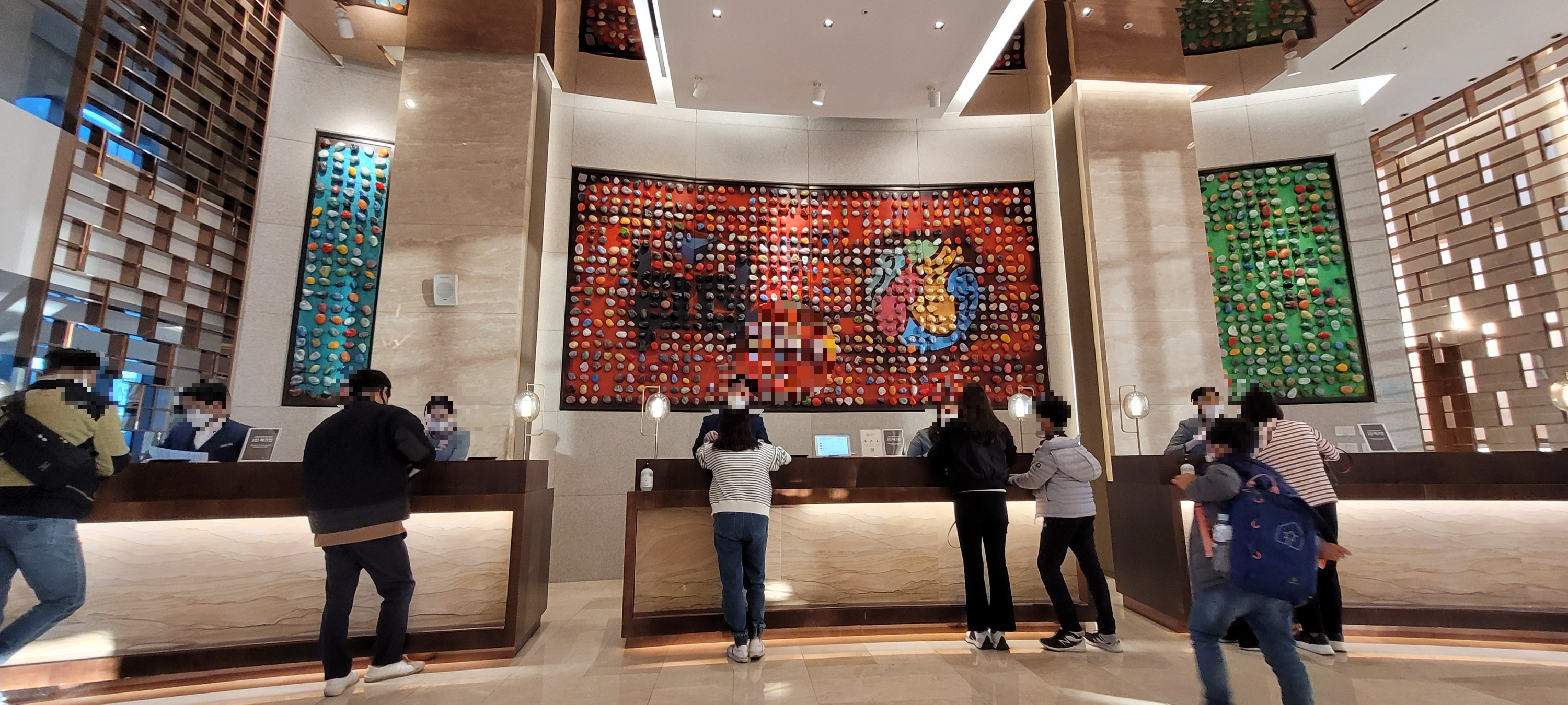 도착하면 차에서 짐을 내려주고 짐을 로비로 옮겨준다. 평일 4시경 도착해서 붐비지 않았지만 체크인 줄이 있어서 10분 정도 기다렸다. 체크인할 때 조식, 스카이풀, 워터파크, 테마파크 이용안내를 꼼꼼히 해준다. 테마파크 티켓까지 챙기면 완료이고 아이가 있는 집은 유모차 대여도 가능하다. 유모차는 그날그날 빌릴 수 있는데 대여가 마감되면 빌릴 수 없으니 아침에 요청하는 것이 좋다. 그리고 아이 어메니티와 욕실 발 디딤대, 아기욕조, 침대 가드도 요청 가능하니 어린아이가 있는 집은 꼭 챙겨서 요구하는 것이 팁이다.
