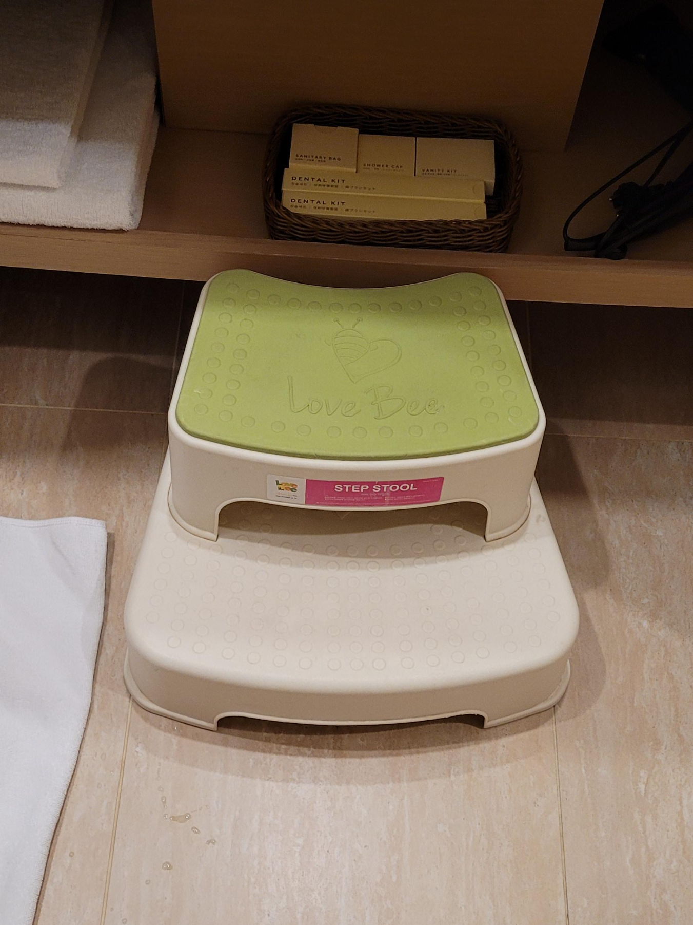 화장실에 욕조가 없는 샤워부스가 있는 형태여서 아이 욕조를 신청해서 잘 쓰긴 했는데 준비해준 베베캐슬 제품은 크기가 커서 샤워부스에 넣고 빼고가 힘들었다. 혼자 잘 서 있는 아이라면 욕조는 부피가 크니 없어도 될 것 같다.
